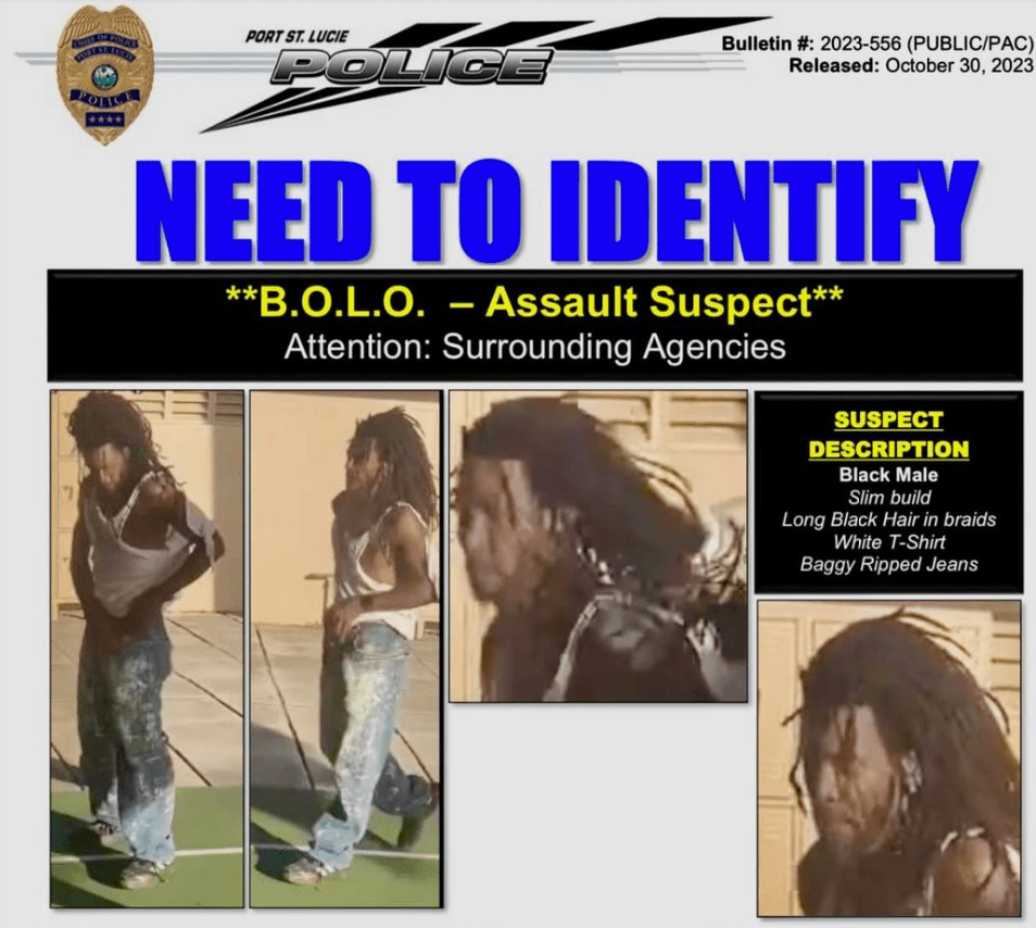 Port St.Lucie- The Port St.Lucie Police have issues a B.O.L.O for an assault suspect after an incident at Charles E. Ray Park.