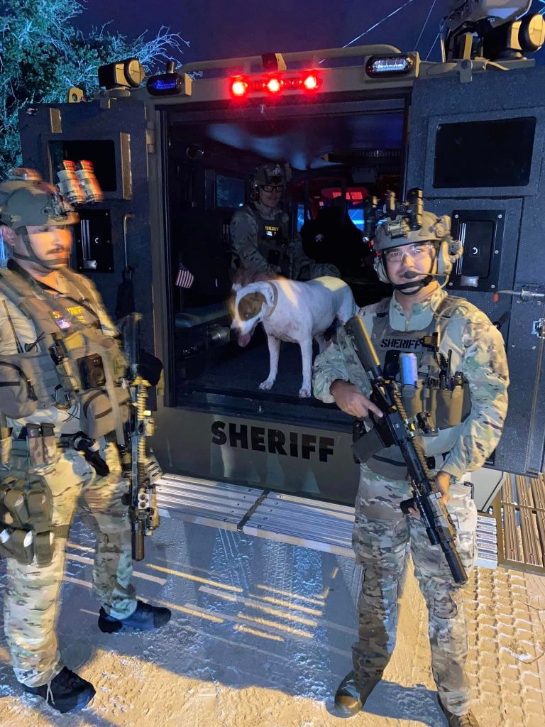 Martin County, Fl -While his humans were getting busted in Jensen Beach a dog named Bear found safety in an armored BearCat with the MCSO Swat team: