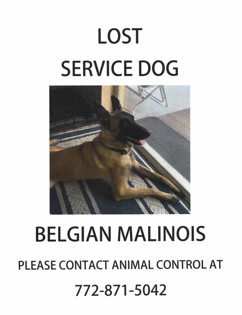 Port St Lucie, Fl -The City of Port St Lucie released this information to help an elderly veteran find his lost service dog.
