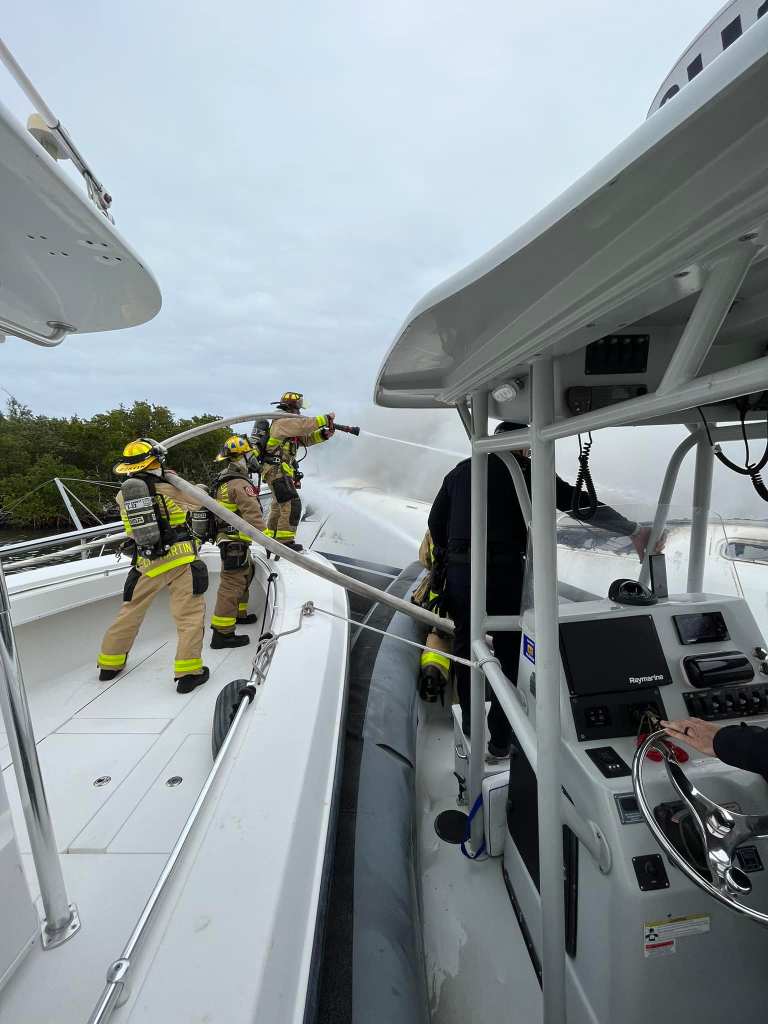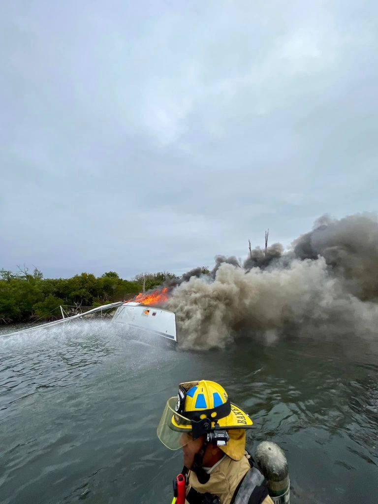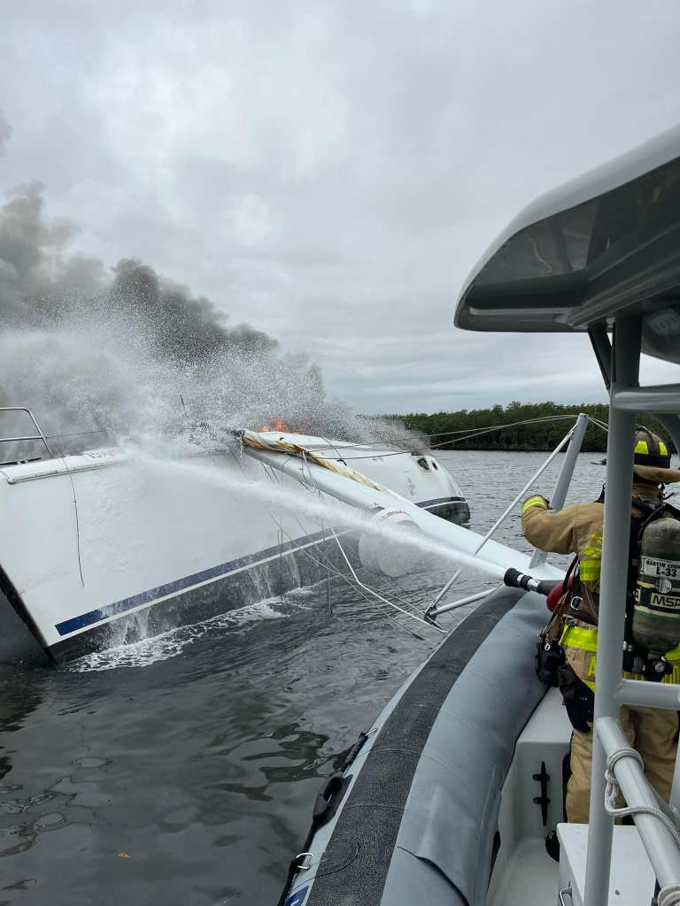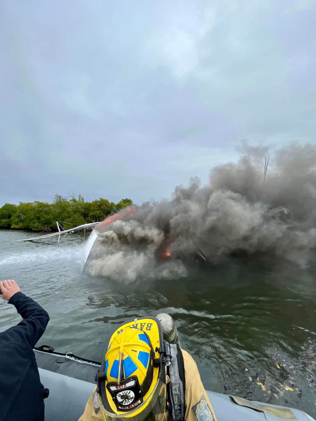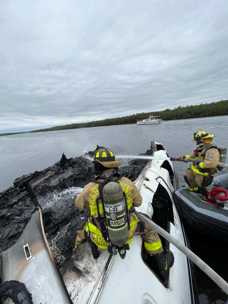 Hobe Sound, Fl- The Martin County Fire Rescue responded to a boat fire at Jimmy Graham Park in Hobe Sound. The boat ramp is located at 8555 SE Gomez Ave, Hobe Sound, FL.