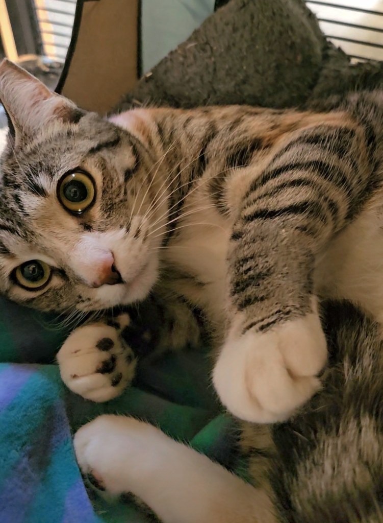 Red is an adorable, ten-month-old female cat who was unfortunately surrendered to the HSTC due to landlord issues. She loves catnip and rolling around on her back. She gets along with other respectful cats and will even watch “Cat TV” videos with you! Red would love an active home that will provide her with lots of enrichment and snuggles.
