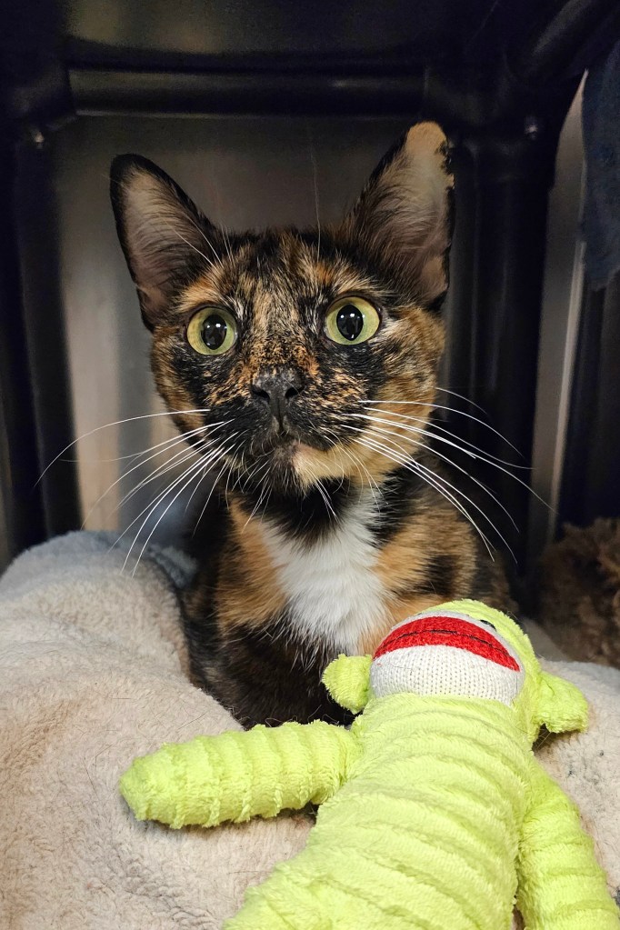 Fresca is a 3 year old, female cat who was found as a stray with her three kittens. Fresca was such a good mommy to her kittens and she is also such a good kitty to her human visitors. She has beautiful markings and a great demeanor for any loving family.