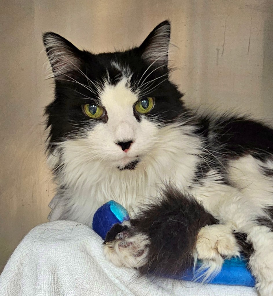 Lindor is a beautiful, long haired, 16-year-old cat who was unfortunately surrendered due to his owner passing away. He’s such a sweet boy and is good with most other cats given a slow introduction. All Lindor wants to do is to sit on your lap and receive endless chin rubs! His adoption fee is waived, and he is more than ready to find a loving retirement home.